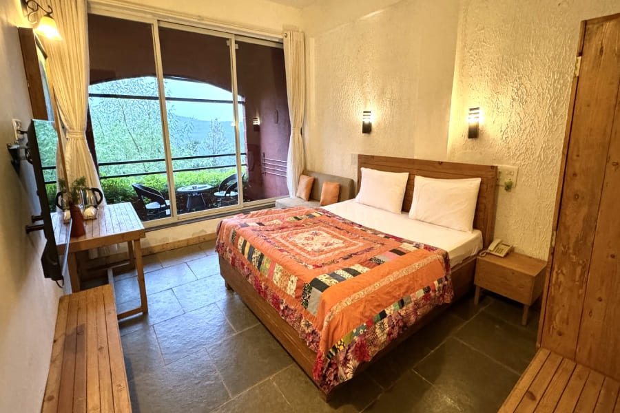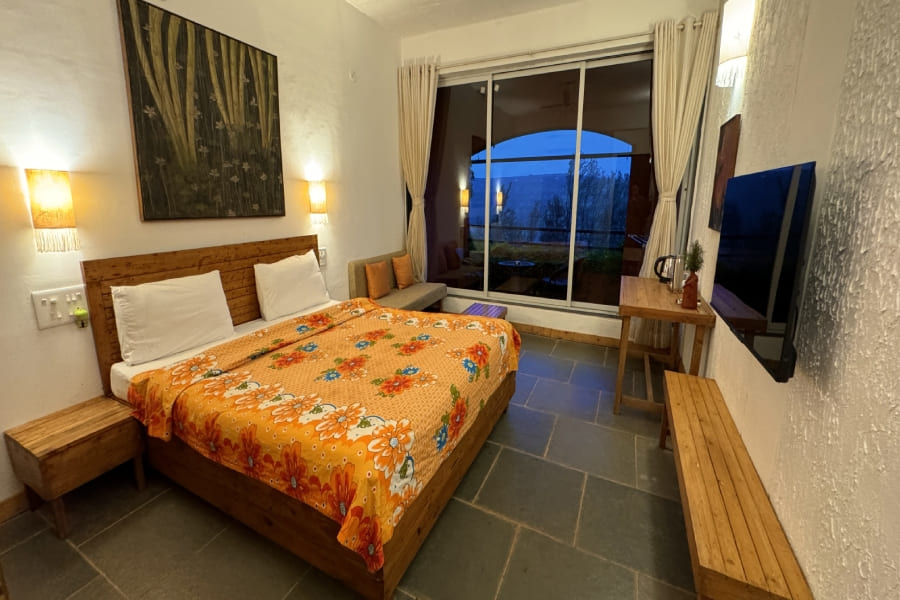 The 4-Bed Suite at "Terra on a Hill" is an expansive and luxurious retreat, perfect for families or larger groups seeking a serene getaway in the heart of Satara's picturesque landscapes. This spacious suite features four beautifully designed bedrooms, each offering modern amenities and a comfortable, stylish atmosphere. Large windows throughout the suite frame breathtaking views of the surrounding hills and valleys, immersing guests in nature while providing the comforts of a refined, well-appointed space. Ideal for gatherings or extended stays, the 4-Bed Suite combines ample living space with the tranquility of the hilltop setting, ensuring a relaxing and memorable experience.